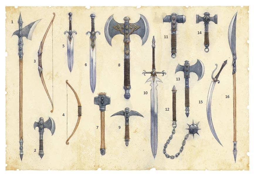 *Valor de dano equivalente as armas de bronze, armas de outros materiais, terão valor de dano diferente.